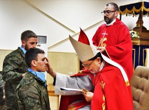 “A lo largo de estos meses de misión en el Líbano, este grupo de militares españoles comenzaron un reencuentro con Dios y con ellos mismos. Por así decirlo, fueron valientes para ponerse a tiro de Dios. Bautizarse, confirmarse y recibir a Jesús Eucaristía es el resultado de un camino interior que conduce a un compromiso definitivo e inquebrantable con Cristo y con su Iglesia, dentro de las Fuerzas Armadas. Cada uno de ellos, tiene la buena voluntad para recomenzar aquella vida de fe que les regalaron sus padres en el día de su bautismo. En Carlos Manuel, son los propios compañeros los que lo empujan para que consolide su fe y su SÍ a Cristo bautizándose en el Líbano. El camino no fue fácil, y se hizo necesario el coraje, la perseverancia en la formación catequética, el compromiso… valores estos que no son ajenos a nuestra vida de milicia”.