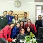 Alumnos y profesores promotores de la carrera durante su presentación en la emisora municipal de Monesterio. Foto: Rafael Molina.