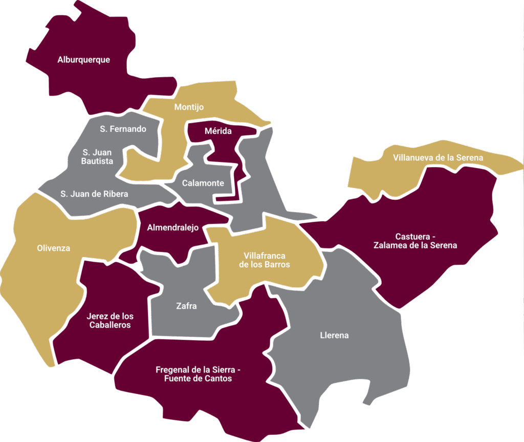 Paisajes diversos configuran la geografía de la diócesis: Tierra de Barros, La Serena, La Campiña Sur, Sierra de San Pedro, las Vegas del Guadiana, Sierra Sur-Raya de Portugal.