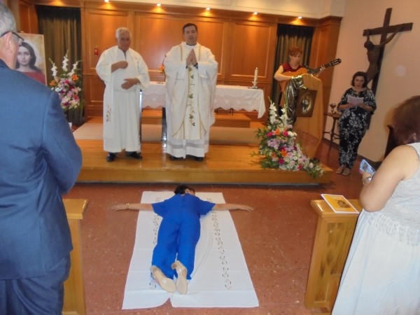 Rodeada de un gran número de Hijas del Santísimo e Inmaculado Corazón de María y de toda su familia, la Eucaristía fue presidida por su hermano. Tras la liturgia de la Palabra vino la petición a la Directora General para ser admitida al Instituto Secular. En la homilía su hermano hizo hincapié en la importancia de los votos en la sociedad de hoy y como para mantenerse fiel no puede abandonar diariamente la oración, la eucaristía y la devoción a María. Seguidamente a la oración Litánica postrada en el suelo, siguió la fórmula de consagración perpetua con la que hizo voto a Dios de guardar perpetuamente castidad, pobreza y obediencia. Tras la bendición solemne vino la entrega del anillo como perpetua fidelidad a Cristo.