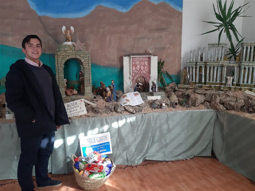 En Bienvenida, los monaguillos, junto con Jerónimo Díaz Vázquez, instalaron un Belén solidario y han recogido alimentos para las hermanas de la Cruz de Zafra. En el Belén estaba representado el arco de Caparra y el Teatro Romano de Mérida, junto a algunos paisajes bíblicos, como la huida a Egipto y la presentación en el Templo, entre otros.