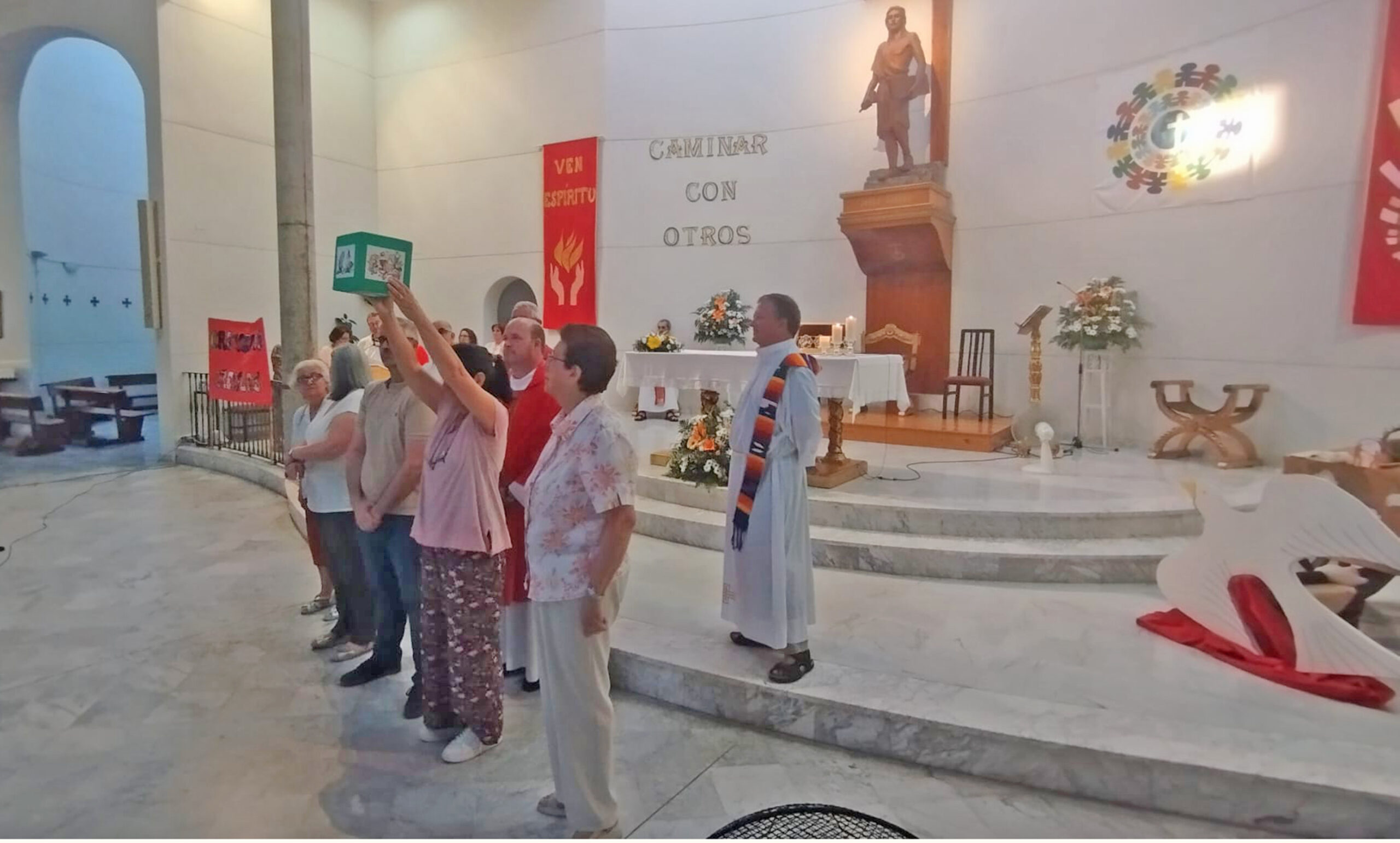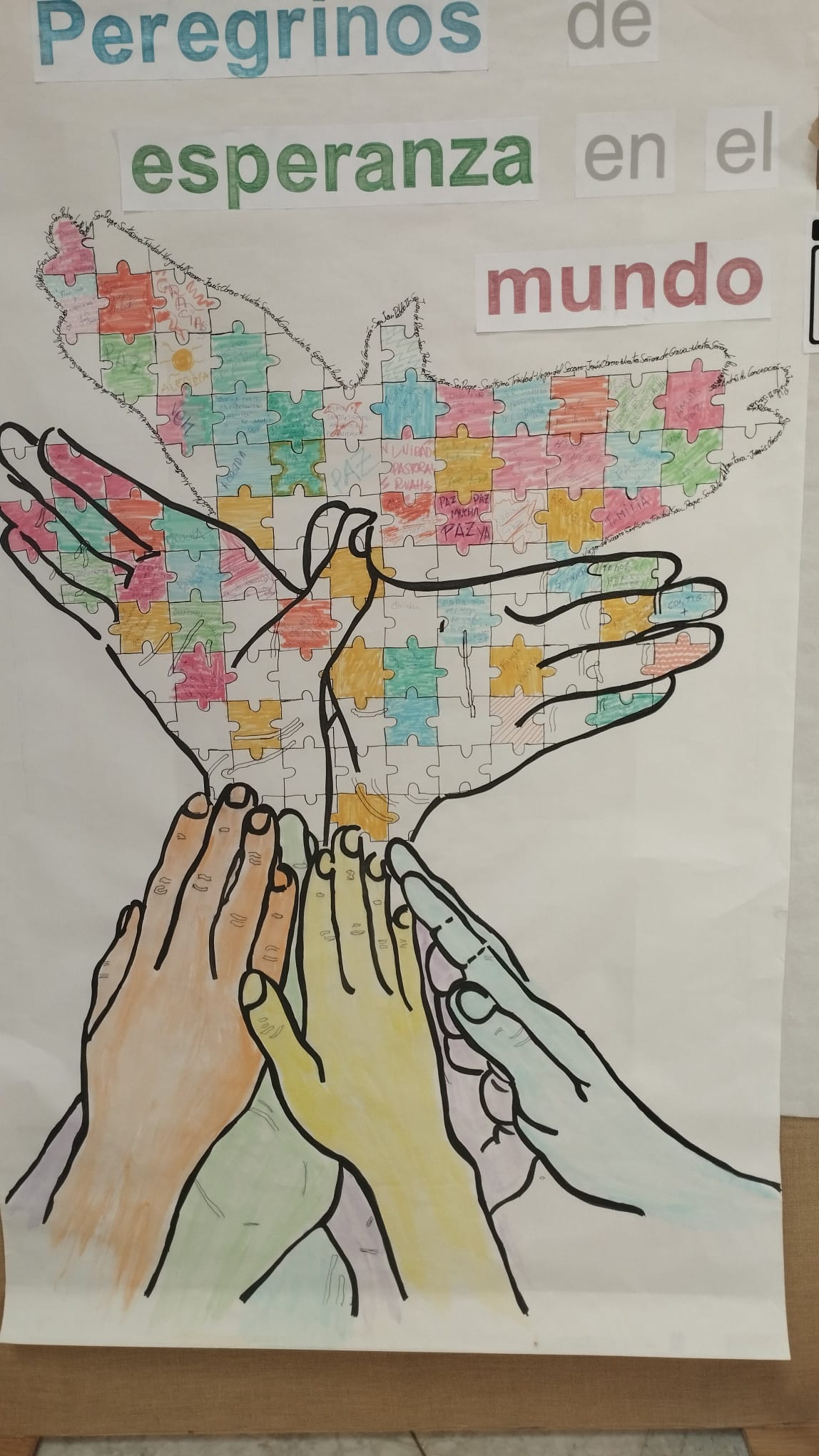 Al término de la celebración, en la plaza detrás de la parroquia, hubo un momento de intercambiar experiencias y dejaron constancia de sus deseos de esperanza en un gran mural-puzzle, sobre el cartel del Día de la Acción Católica y el Apostolado Seglar de la Conferencia Episcopal Española.