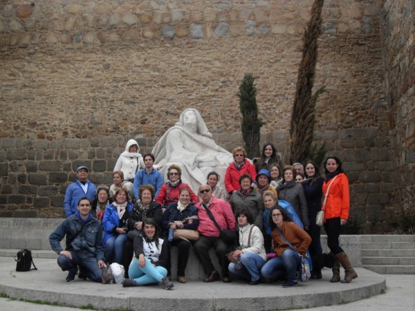 Peregrinos ante la escultura de santa Teresa de Jesús en Ávila.