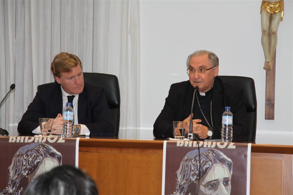 El arzobispo de Mérida-Badajoz, D. Celso Morga, asistía este martes 21 de marzo a la presentación de la Semana Santa en Badajoz, junto al delegado episcopal para las Hermandades y Cofradías, Pedro Fernández Amo, el alcalde de Badajoz, Ignacio Gragera, y el presidente de la Agrupación de Hermandades y Cofradías de Badajoz, Cayetano Barriga.