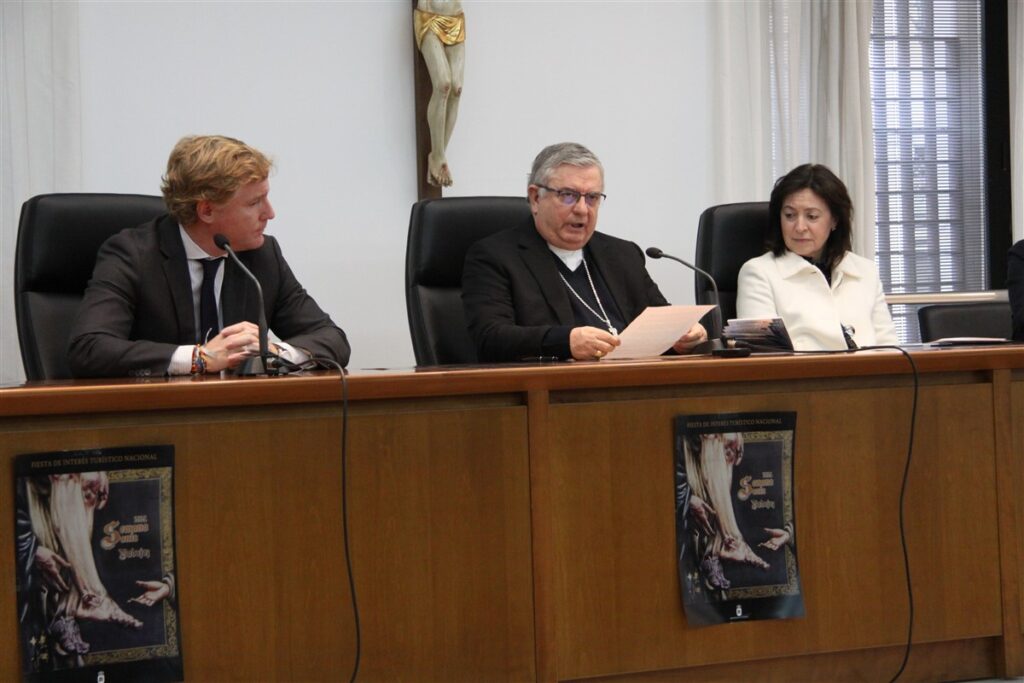 Este miércoles 13 de marzo se ha presentado en el salón de actos del Arzobispado en Badajoz la Semana Santa de la capital pacense. A la misma asistió D. José Rodríguez Carballo, arzobispo coadjutor de Mérida-Badajoz; el delegado episcopal para las Hermandades y Cofradías, Pedro Fernández Amo; el alcalde de la ciudad, Ignacio Gragera, y la secretaria de la Agrupación de Hermandades y Cofradías de Badajoz, Laura García.