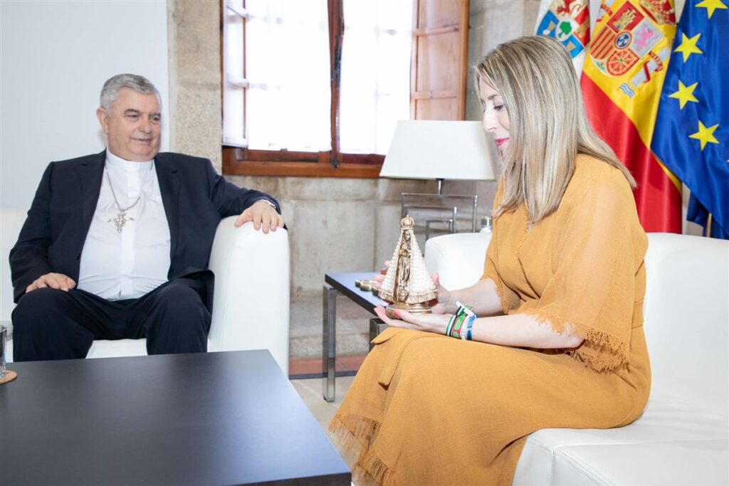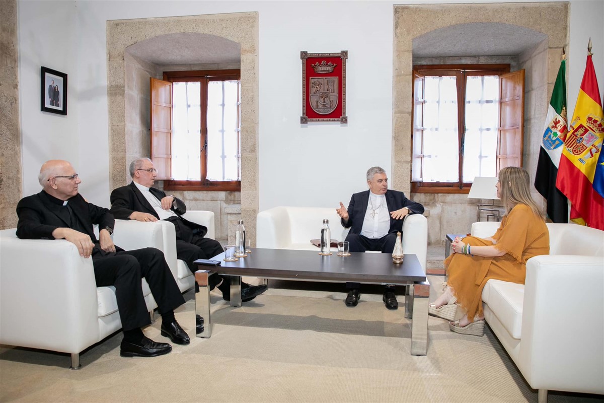 El miércoles 17 de julio D. José Rodríguez Carballo y D. Celso Morga visitaron a la presidenta de la Junta de Extremadura, María Guardiola, en la sede de la Presidencia en Mérida.