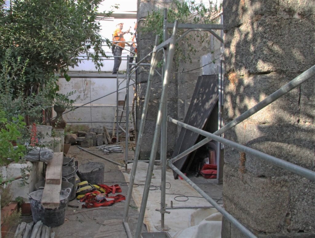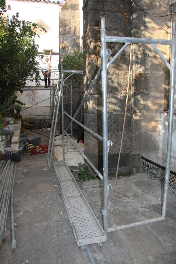 Esta mañana se han iniciado los trabajos de reforma de las cubiertas de la Catedral de Badajoz con la colocación del andamiaje. Concretamente se ha comenzado por el ala este del claustro (el más cercano al templo), que se trata de la zona más dañada del mismo. Después continuarán por el resto del claustro, la sacristía, antesacristía, zona del altar de San Blas (la más cercana al altar mayor) y la capilla de Santa Teresa.