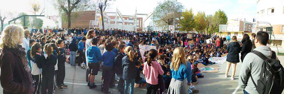Todo culminaba, aunque su compromiso, lejos de culminar, se reforzaba, con una acto conjunto en el patio, en el que cada clase ubicaba los murales que habían trabajado sobre las vallas que rodean el patio, queriendo simbolizar el que quieren ser signos de esperanza ante los muros que las personas levantamos, los cuales impiden crecer en libertad, especialmente aquellos que no permiten crecer a tantos niños y niñas en el mundo.