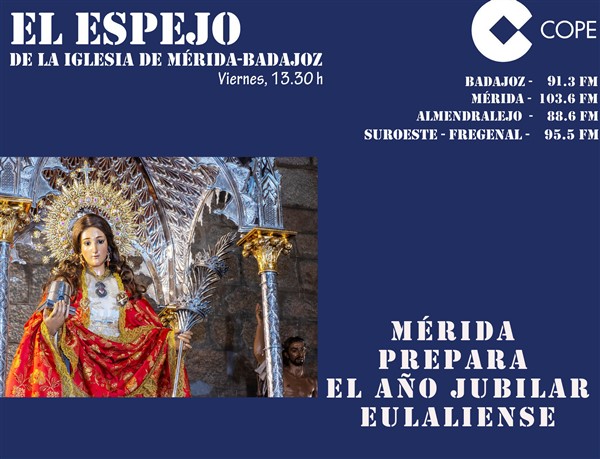 Programa religioso de la cadena COPE de la Archidiócesis de Mérida-Badajoz del 10/12/2021. Entrevista a Luis Miguel González Pérez, presidente de la Asociación de Santa Eulalia, sobre la figura de la mártir y el Año Jubilar Eulaliense; Fe Feliz-Miguel Segura, por Eduardo Márquez; concierto solidario del coro Amadeus a favor de Manos Unidas, por Rocío Pérez Ortiz; Pedro Manuel Vinteño López nos trae el testimonio de Juan Antonio Sánchez, joven emeritense de los Scout católicos; Última palabra, por Rafael Angulo.