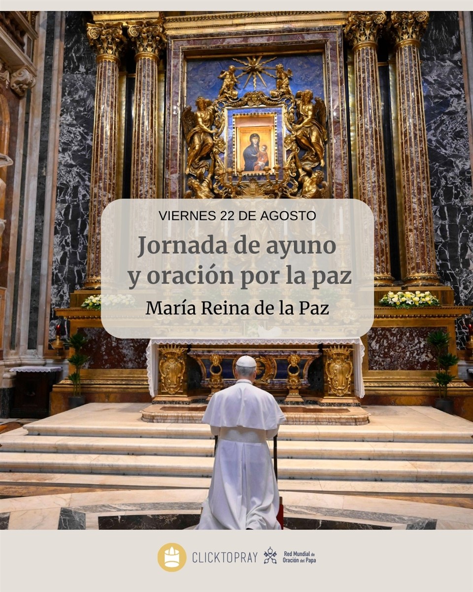 El Santo Padre realizó esta invitación a todos los creyentes el pasado miércoles, en la Audiencia General, donde animó a participar en esta jornada «implorando al Señor que nos conceda la paz y la justicia, y que enjugue las lágrimas de quienes sufren a causa de los conflictos armados en curso». También invitó a invocar la intercesión de la Santísima Virgen María: “Ella es la Madre de los creyentes aquí en la tierra, y también es invocada como Reina de la Paz, mientras nuestra tierra sigue herida por las guerras en Tierra Santa, en Ucrania y en muchas otras regiones del mundo”.