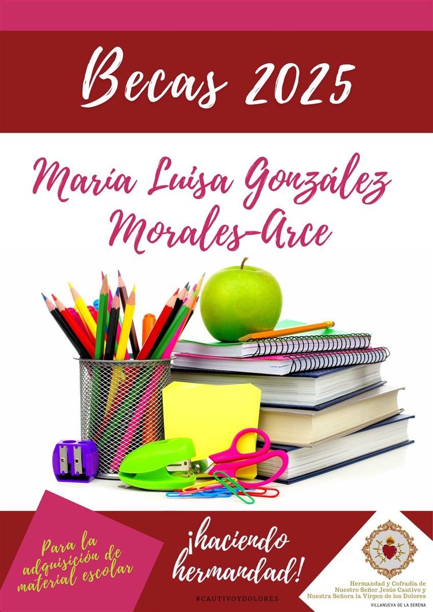 La Hermandad y Cofradía de Nuestro Señor Jesús Cautivo y Nuestra Señora la Virgen de los Dolores informa que ha convocado la undécima edición de las Becas María Luisa González Morales-Arce para la adquisición de material escolar de cara al curso 2025/2026.