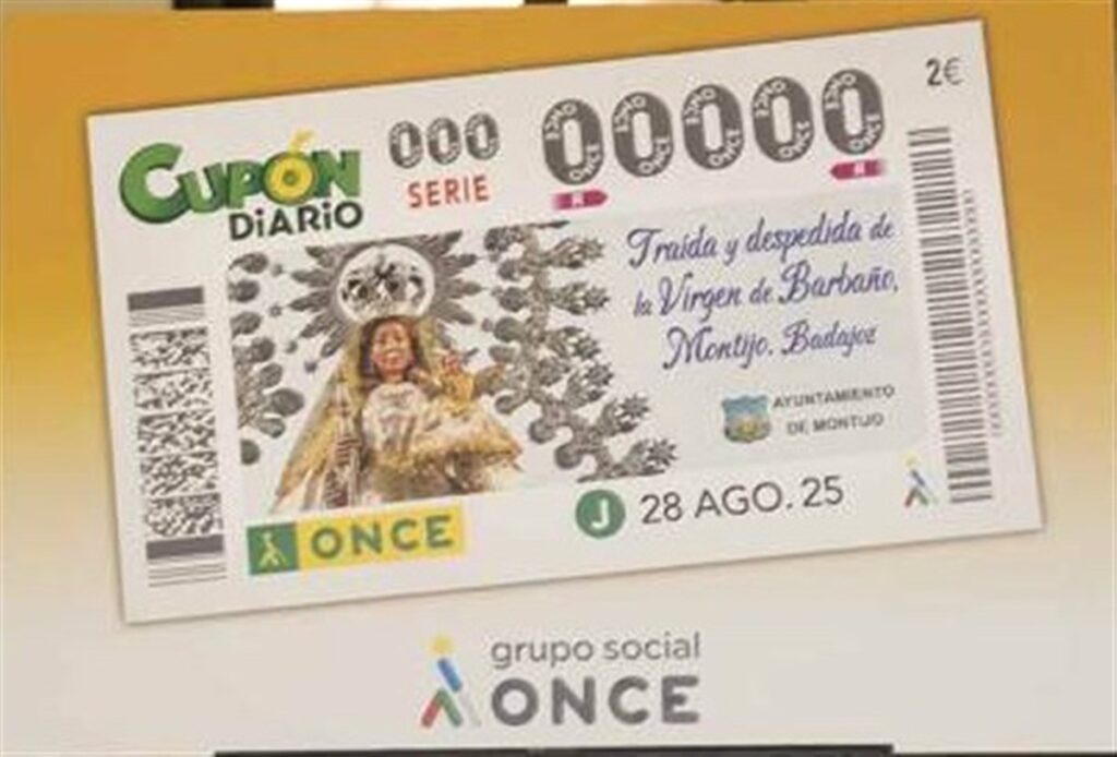 El próximo día 28 de agosto el Cupón de la ONCE tendrá como imagen a la Virgen de Barbaño, patrona de Montijo, el mismo día en el que se traslada desde su ermita a la localidad para presidir las ferias y fiestas patronales.