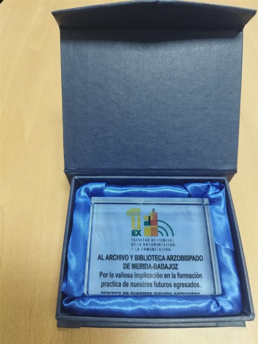 El Archivo Eclesiástico y la Biblioteca de la Archidiócesis de Mérida‑Badajoz han recibido un reconocimiento por parte de la Facultad de Ciencias de la Documentación y la Comunicación de la Universidad de Extremadura, en agradecimiento a su valiosa implicación en la formación práctica de los estudiantes universitarios.