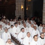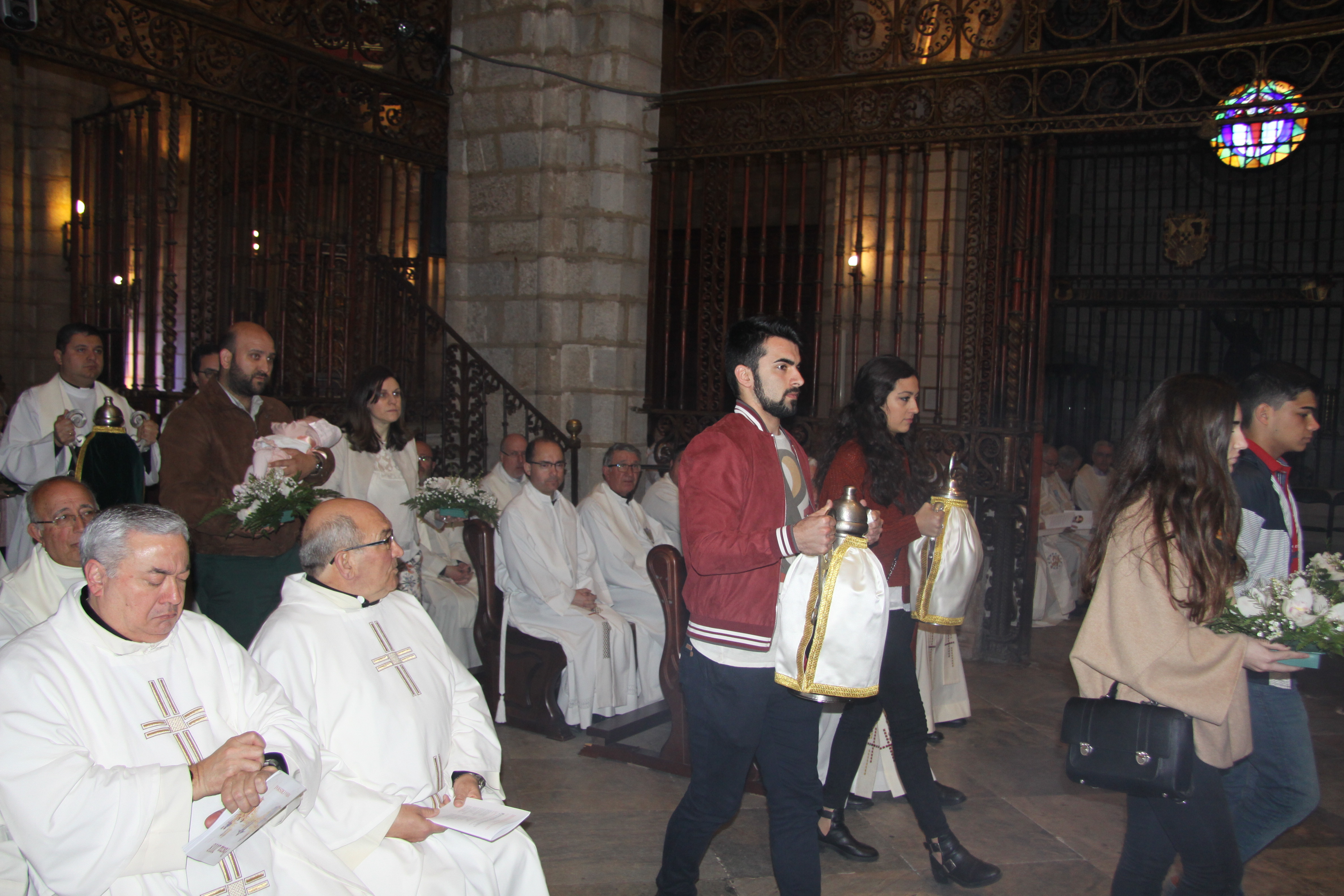 Don Celso Morga presidió este martes santo la Misa Crismal en la Catedral metropolitana. En ella los 150 sacerdotes que concelebraron la Eucaristía renovaron sus promesas sacerdotales, se bendijeron los óleos que se utilizan en la unción de enfermos y en el bautismo, y se consagró el crisma, que se utiliza en el bautismo, la confirmación, las órdenes sacerdotales y en la dedicación de las iglesias y los altares. Éstos fueron ofrecidos por un matrimonio y su hijo pequeño, jóvenes catecúmenos de confirmación, dos sacerdotes jóvenes y dos personas mayores, acompañadas por dos religiosas Hermanitas de los Ancianos Desamparados.