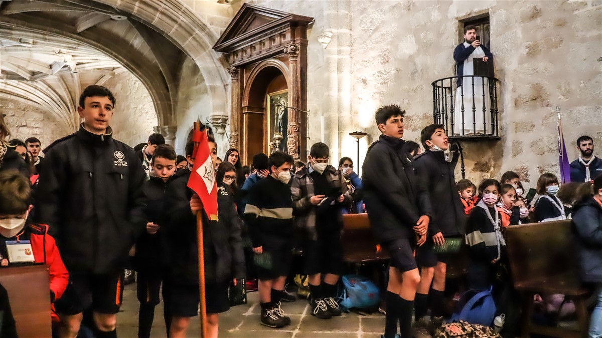 La jornada comenzó con la bienvenida a cargo del Grupo organizador (Flor Roja, de Plasencia), quien repartió a los presentes unas galletas con la forma de la flor de lis, emblema mundial scout. La Eucaristía, en la basílica del Monasterio, fue presidida por el Administrador Apostólico de Plasencia, don Ciriaco Benavente Mateos, y concelebrada por los consiliarios de diversos Grupos Scouts extremeños. La misa contó con la participación del Coro Scout de Extremadura y en la misma se pudieron oír por primera vez en Extremadura en el órgano de la iglesia las notas de la Canción de la Promesa, del jesuita Jacques Sevin, legendaria canción scout compuesta en1921.