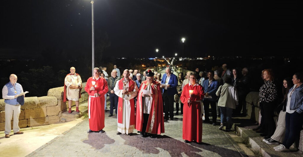 Dicho encuentro comenzó el viernes realizando el Via Martyrium con la reliquia de la mártir desde el puente romano hasta la basílica. Los participantes recorrieron las 12 estaciones que rememoran la llegada de Eulalia a Mérida, así como sus tormentos hasta su muerte. Estuvieron acompañados por los sacerdotes Juan Cascos, párroco de la basílica, y Francisco José Fernández, que venía de Totana.