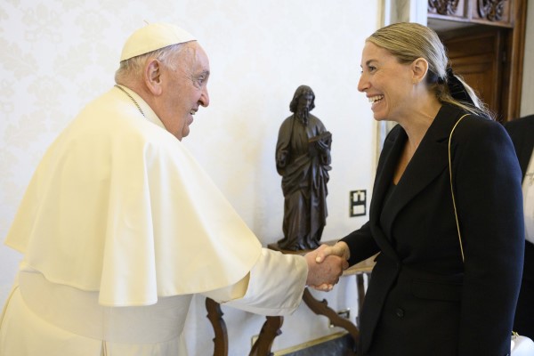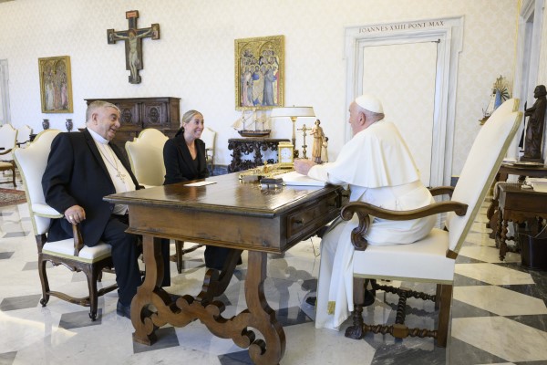 Por su parte María Guardiola le habló al Papa de Extremadura, lo invitó a visitar el Real Monasterio de Guadalupe, un lugar que también visitó Juan Pablo II en 1982, y le hizo entrega de una réplica de una encina y un ejemplar de la novela “El Mozárabe”, del sacerdote y escritor Jesús Sánchez Adalid. El Papa los obsequió con unos rosarios.