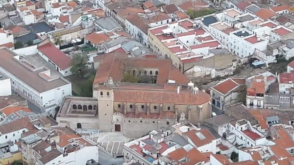 Vista aérea de la parroquia con el claustro