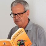 Pedro Maya con su libro “El Día del Señor en Radio Monesterio”. Foto: Rafael Molina.