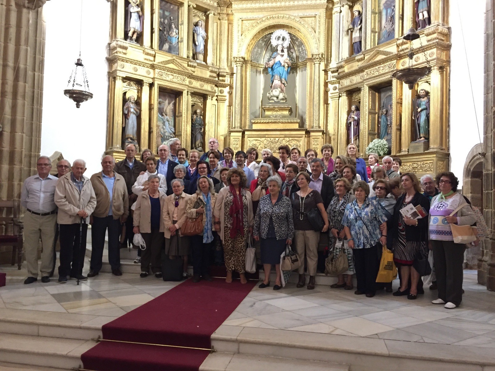 La jornada se inició en el Ayuntamiento con la acogida de su Alcaldesa, que además puso a disposición de los peregrinos una experta guía, Ana, para la visita turística a la ciudad, de la que destacó el impresionante templo de Ntra. Sra. de la Consolación, cuyo retablo mayor recoge la foto. El Delegado, Mariano Cabanilla, presentó el programa del curso, que giró en torno al eje evangelizador que inspiran todas las actividades: “Cristo, rostro de la Misericordia”.