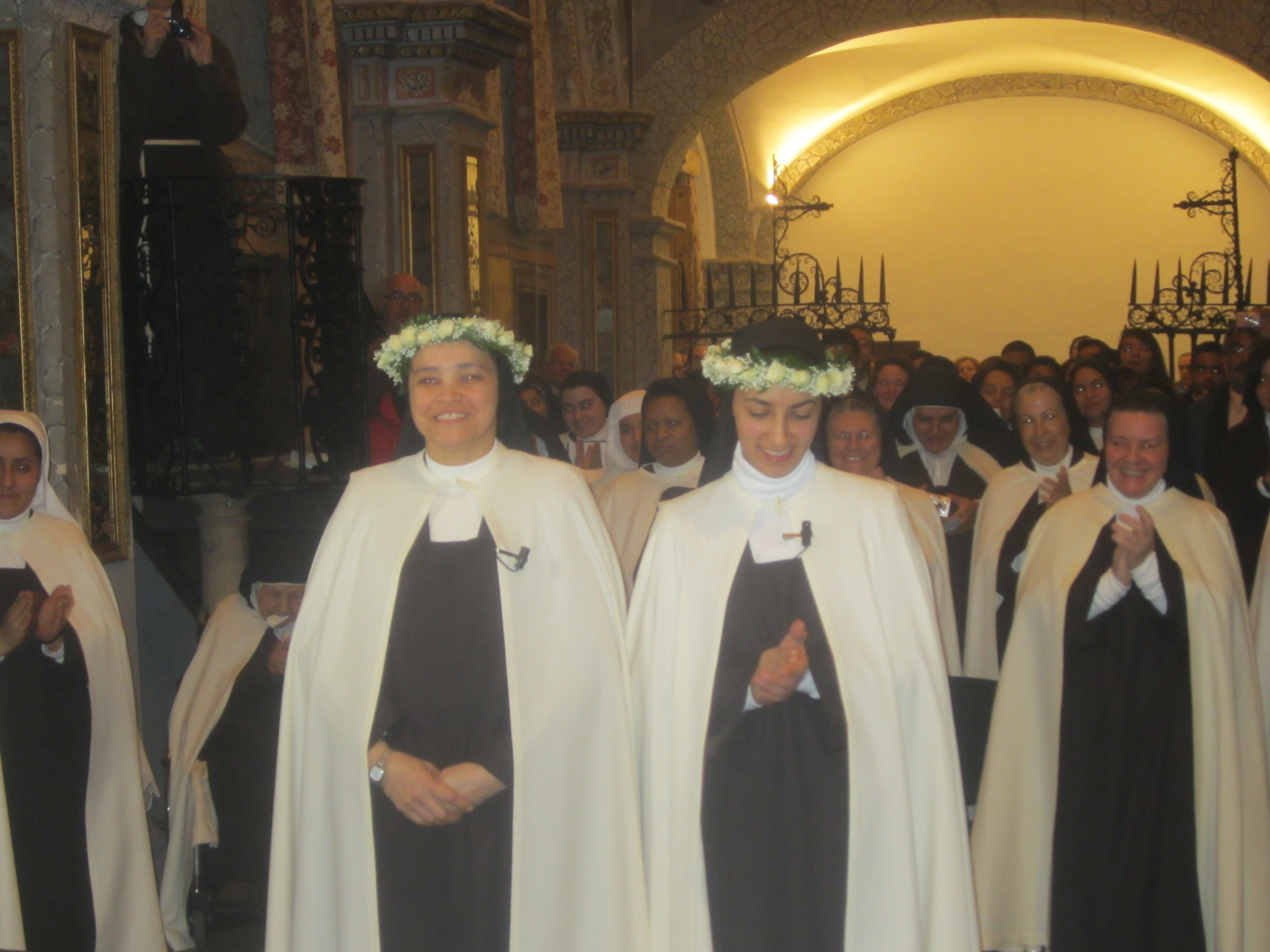 La Hna. Samay estuvo acompañada por toda su familia: sus padres, sus 10 hermanos, tía y primos. Por su parte, Ariadna estaba acompañada por dos primos. También participaron hermanas Carmelitas Descalzas de Talavera la Real, Fuente de Cantos, Sanlúcar la Mayor, Clarisas de Santa Ana, hermanas de Marta y María y mucha gente que conoce la comunidad en la medida que se pudieron acomodar en la pequeña capilla. Fue una celebración entrañable y en un clima de oración por las dos nuevas hermanas.
