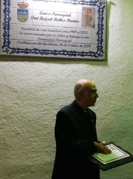 El 26 de octubre Pueblonuevo del Guadiana rindió homenaje al sacerdote D. Rafael Robles Porrino, quien fuera su párroco durante más de 40 años (desde 1969 a 2013), en reconocimiento por su labor y entrega a esta comunidad parroquial.
