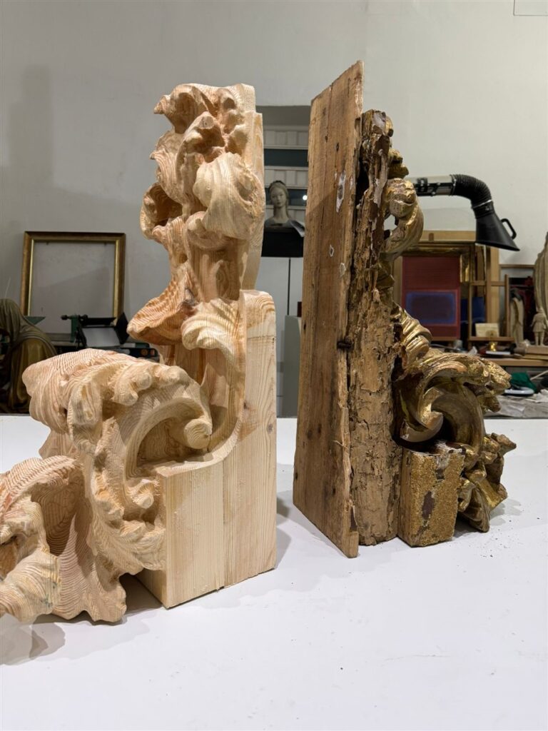 Después de un proceso de limpieza y control de los ataques biológicos, principalmente de termitas, se repusieron piezas que faltaban y se consolidó el soporte, eliminando los añadidos posteriores en escayola que distorsionaban la integridad del mueble. Posteriormente, se repararon fisuras y fendas internas, revitalizando cada detalle. Se han utilizado técnicas tradicionales y materiales compatibles que respetan la integridad del bien original. La metodología llevada a cabo para las tallas doradas fueron la limpieza y reintegración cromática, matizando los valores tonales del dorado. Como finalización la obra recibió una película de barniz como protección.