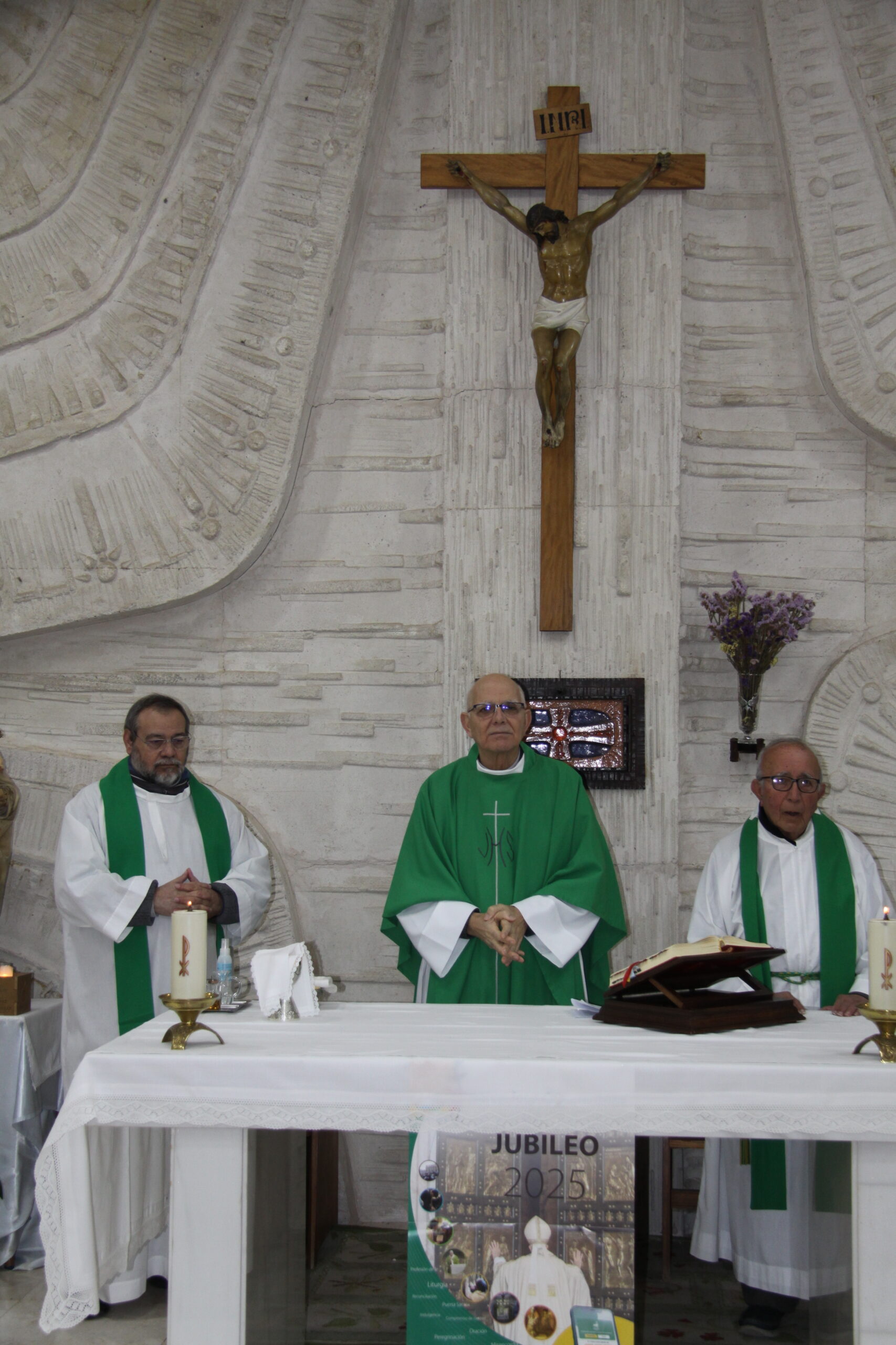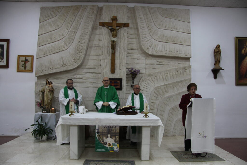 La Eucaristía fue presidida por el vicario general, Francisco Maya, y concelebrada por los dos capellanes: Isidro Luengo y Antonio León. En su homilía, Francisco Maya afirmaba que el Jubileo es un tiempo de esperanza para “salir de nuestros desánimos” y pasar “del desaliento a la serenidad”. Este Año Jubilar “es tiempo de arrepentimiento, de conversión porque Dios no condena, no juzga, sino que nos perdona”. Es tiempo “para reconocer nuestros errores, de pedir perdón y reconocer lo que hay de bueno en nosotros”.