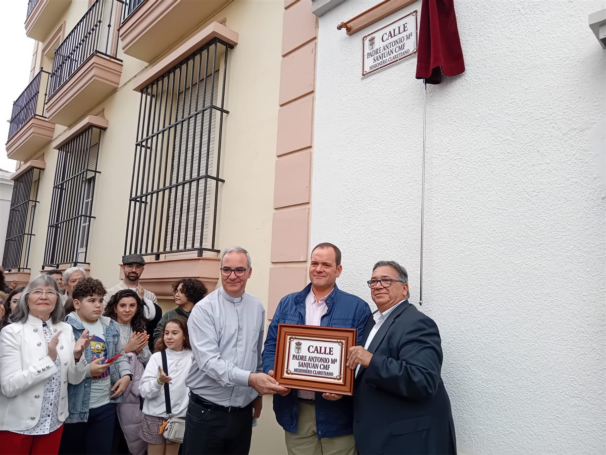 El pasado viernes, día 18 de octubre, se daba cumplimiento a un acuerdo de pleno del Ayuntamiento de Almendralejo en el que se aprobó, por unanimidad, rotular la calle Audiencia como calle Padre Antonio San Juan, claretiano fallecido recientemente. La iniciativa había partido de la Hermandad del Stmo. Cristo del Amparo.